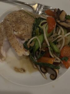 Season fish before you saute the veggies – see above please