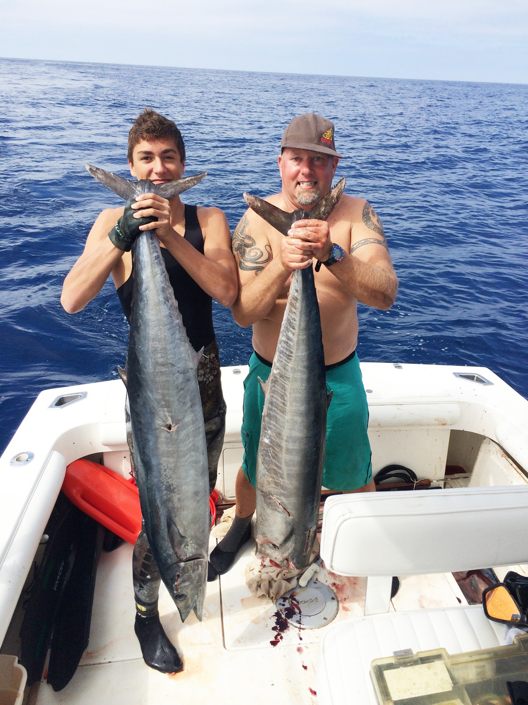Gavin Velasco and dive buddy shot these wahoo on Sunday 10/12 in California waters only 30miles out. They weighed 43lb and 48lb