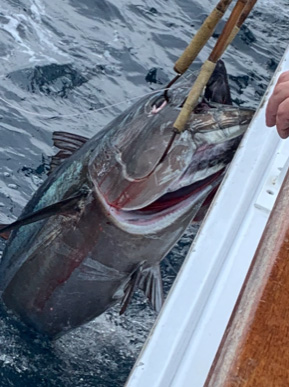 Alex Gutierrez, Chava Anguiano and Hills Sutton tag teamed a 205 lb bluefin tuna on kite with frozen flyer double trouble with single [...]