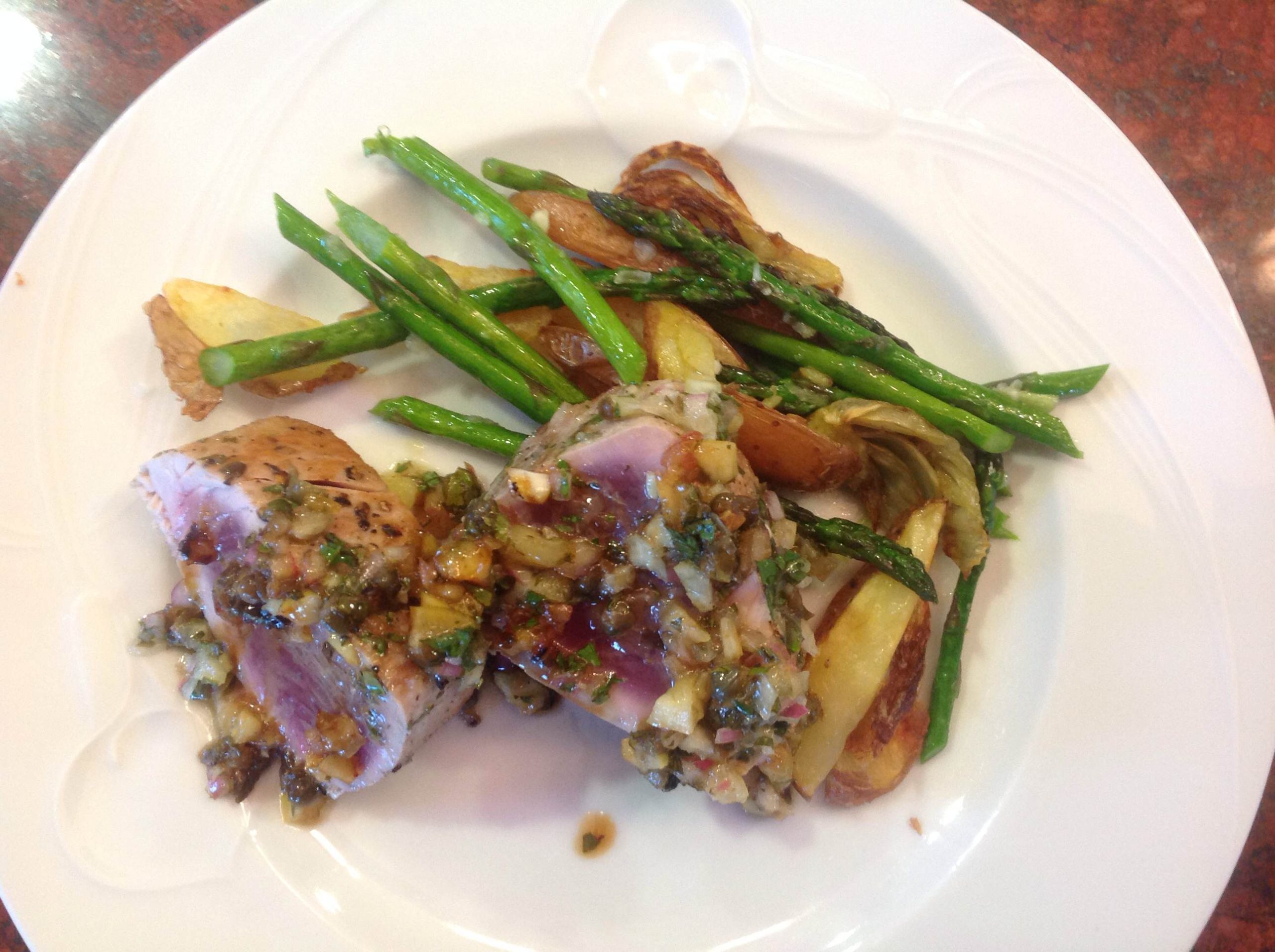 PAN SEARED TUNA with LEMON and CAPER RELISH