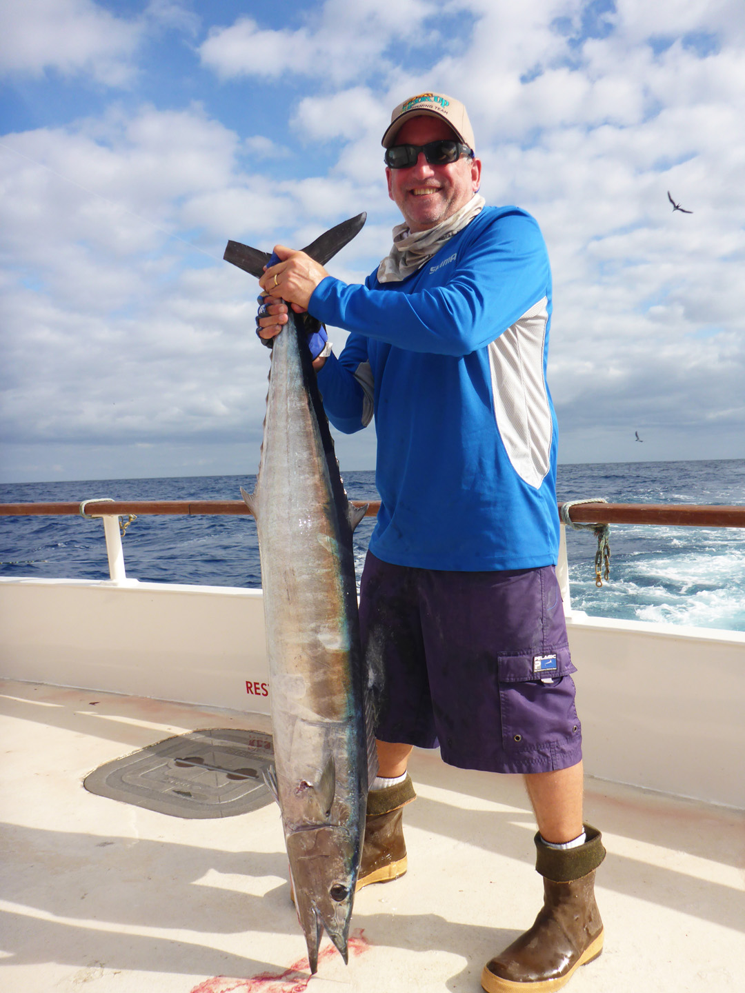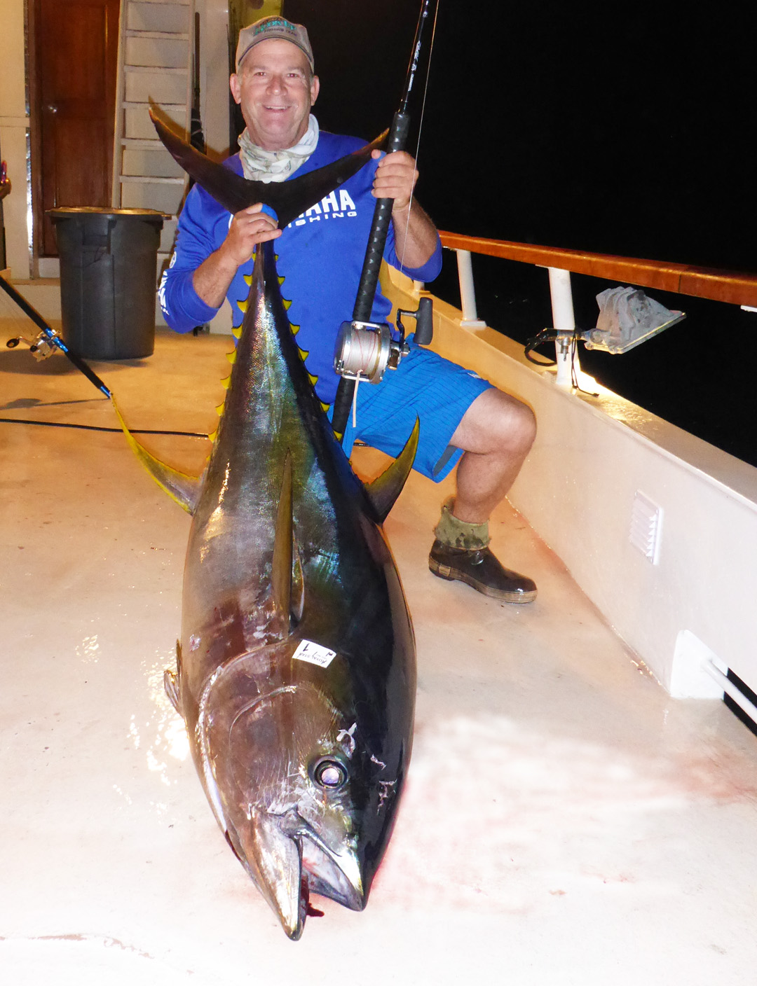 We started the trip at Hurricane Bank where the Royal Polaris just finished an epic catch. The Shogun arrived a couple days ahead of us and though things were starting to slow down, the quality of the fish was fantastic. When we arrived at the bank on Saturday, the kite bite was “going off”. I was number 1 on the kite and was bit on a live flying fish in less than two minutes. Captain Randy Toussant commented “looks like a good one”, but unfortunately after about a 10 minute battle the big fish ran around the anchor line and despite the efforts of Captain Brian Sims we lost it. That morning we went thought almost the entire kite rotation, with most fish from 130 to 190 pounds. Unfortunately, there was not a lot of bites to go along with the kite, but Bob “Turbo” Ryan did his usual and outperformed other anglers with a couple big fish on the live puffer. We only managed 21 fish this day -all quality, but unfortunately things the next day started getting even slower. The