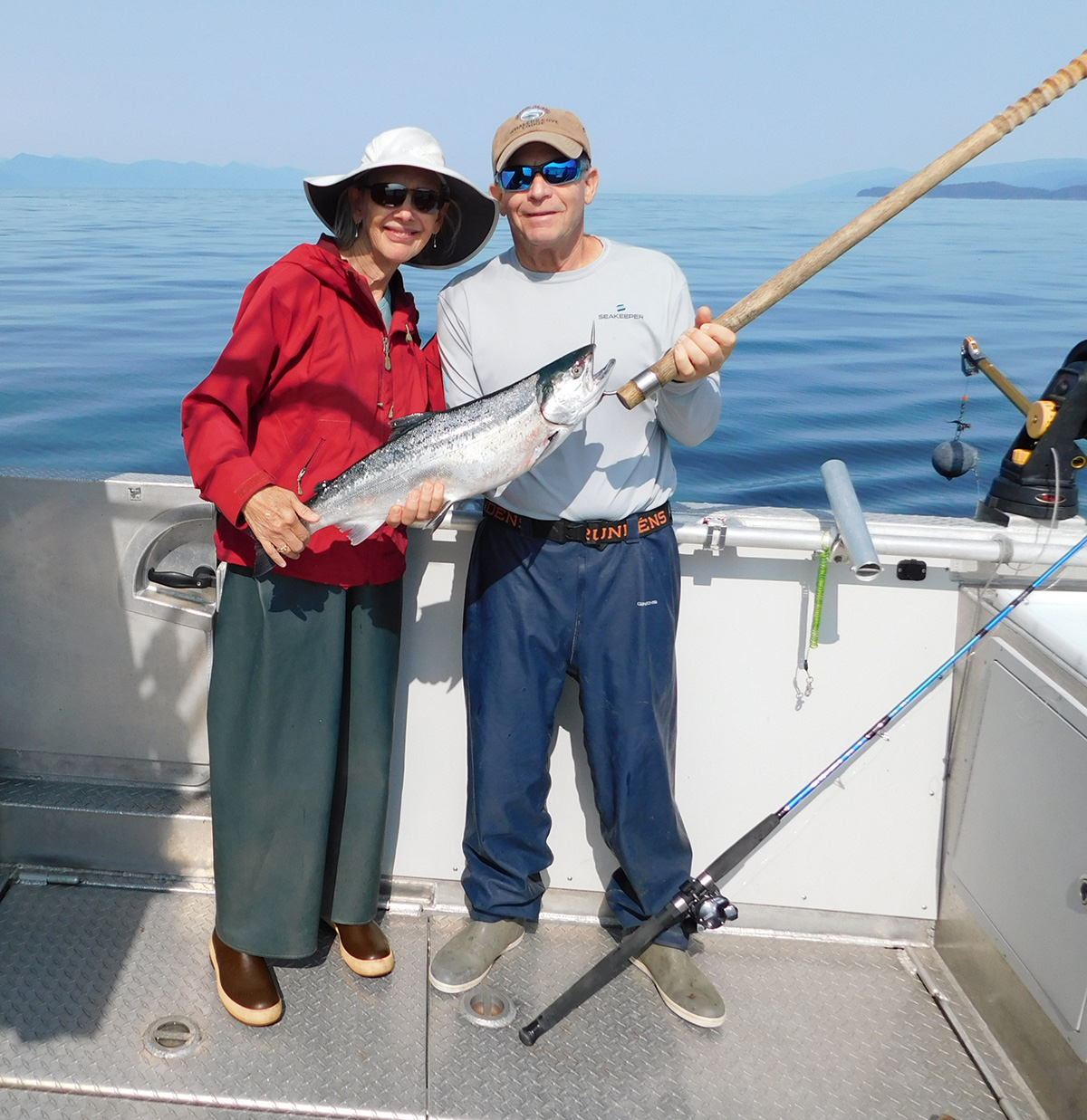I love it when a plan comes together! Our Let’s Talk Hookup/Davis Boats trip to Whalers Cove Lodge in Angoon, Alaska was fantastic….again. Mark and Kristine Powers continue to improve the lodge each year, making an incredible destination better and better. This year they built a new deck off the main lodge with a pool table, fire pit and other amenities all with a beautiful view. This year was extra special for me as my wife Lolly joined the fun. We stayed in one of the beautiful suites and had a fabulous deck overlooking the water for cocktails after our fishing day. We fished with our good friend Rich Topp aboard a super comfortable 32 foot aluminum boat powered by twin Yamaha 300 outboards that was stable and fast. She had plenty of fishing room and equipped with everything you need for a great day on the water. Captain Ethan Broody has been working at Whalers Cov