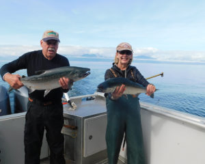 no need to drag your own up! We climbed aboard the boat and headed to start our day catching halibut. The slot limit on halibut this year was 38 inches or less, about a 30-pound halibut. We caught plenty of halibut both over and under the slot, and in less than an hour we had our 3 fish limits. Next up was salmon, which was unusually slow. Normal condition, Coho salmon were in abundance in mid-August, but the last 2 years has been unusual in south east Alaska. It could have something to