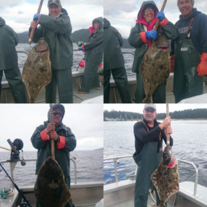 With the slot limits on the halibut for the guided boats we were limited to keeping fish that were below 44 inches or above 80.  All of our catches were below the 44 inch mark and my brother Manny caught a fat one at around 43.75 inches.  There were several that were released in the 50 in range and Justin from Arizona caught and released one around 60 inches which was the largest released halibut.  This won him a 2 for 1 trip back to the lodge.  The self-guided groups did extremely well on the halibut as they could take home 2 each per day and they did not have any size limits.  A group from Colorado brought back a 92 pounder on day 3!