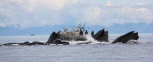 By our third day of fishing we really had not seen too many whales yet, but we were definitely in store for a treat.  As we were trolling for salmon, we noticed a bunch of seagulls starting to gather above.  Then large streams of bubbles came up from the waters to trap the herring near the surface.  All of a sudden a small pod of 3-4 humpbacks whales erupted from the depths with their mouths wide open to engulf the bait fish.  What a majestic site to behold especially when this was happening approximately 30 ft. from the bow of our boat!  Needless to say the most of the fishing stopped while this spectacular whale show was going on all morning.  Some guests even said they ignored their trolling rigs going off to watch in awe as the humpbacks showed off.  Definitely a National Geographic/Discovery channel moment.   But that’s the magic of this place; it’s not just the great fishing, but also the incredible flora and fauna that grace this beautiful locale.  Dallas did not get to fish the first 2 days but she spent them hiking around the Island.  She purchased a Nature Survival Guide for the local islands which had some great information about the edible vegetation on the Island.  She was able to forage a nice variety of berries for her and Rick.  We joked with her that she was getting ready for one of those survival shows and that we might see her and Rick on Naked and Afraid soon.  Dallas also incredibly enough, encountered a 6 point Sitka Black Tail Deer and his fawn.  She took some great close up pictures as the deer were not scared off by her presence.  We just had venison the night before and we hoped it was not Bambi’s mother, oh deer!