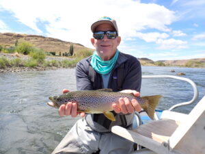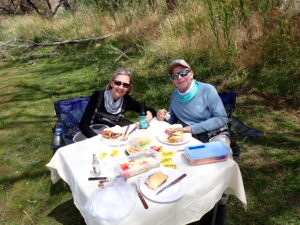 a super kind couple.  The inn had spectacular views and fantastic accommodations, along with great cuisine.  I would highly recommend a stay there.     The next morning, we were picked up by our guide from Set Flyfishing and we drove to their base at Spring Creek Lodge in Juninde del los Andes to pick up our inflatable drift boat and start our fly fishing adventure.  We spent the day drifting the Alumine River and we never saw another person on the river.  We fly fished with a nymph and dry fly indicator rig.  Fishing was surprisingly tough for as little pressure as this river receives.  We did manage to catch some nice rainbow and brown trout up to 16 inches and enjoyed a spectacular day.  We spent the night in our own cabin at Spring Creek Lodge and enjoyed amazing food and accommodation.  The next morning our guide was back and we headed off to the Chimehuin River for a 2 day float and camp trip.  That morning the fishing was amazing, nearly every cast was a bite and we released a bunch of fish to 18”, mostly rainbow but a few brown trout too.   After a great shore lunch, we continued our drift and things began to get a little tougher in the lower part of the river.  There was a green algae bloom that  got on our flies almost every cast.  We still managed to get several fish before we reached our camp for the night. It was already set up by two guys, with a fire going and beef and sausage already cooking on the open flame.  After a nice dinner and comfortable tent accommodations, the next morning we were off on the river again.  We still had the algae problem that made fishing tough all day. We finished our drift and headed back to Casona del Alto in San Martin for a shower, great dinner, and rest in preparation for our next adventure.