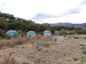 Our next stop was about a 2-hour flight south from Bariloche to El Calafate in southern Patagonia.  We enjoyed a fun night in the picturesque town and the next morning we hit the road in our rental car to the Perito Moreno glacier.  A fantastic experience and not to be missed.    We then continued on a 3 hour drive to El Chalten at the base of the famous Mount Fitz Roy.  With some challenges, we were able to find our next hotel 7 miles up a dirt road called the Patagonia Eco Domes.  This is a small lodge with only 9 permanent Dome tents.  I guess you may consider this “Glamping” , but these domes were fully equipped with wood burning stoves, lighting, hardwood floors, full bathroom and shower and all the convenience you would want in a fine hotel room, except it was literally at the base of Mt Fitz Roy.  One of our favorite things to do in the 3 wonderful days we spent there was after a great hike, we would take our lounge chairs out our door and sit and enjoy a cocktail while looking at the mountains, glaciers and wildlife.  Don’t forget your binoculars as this place has a lot to see.  We even saw an Andean condor! The food and service at the Patagonia Eco Domes is fantastic. There were so many highlights on this trip, but this stay is certainly right at the top.