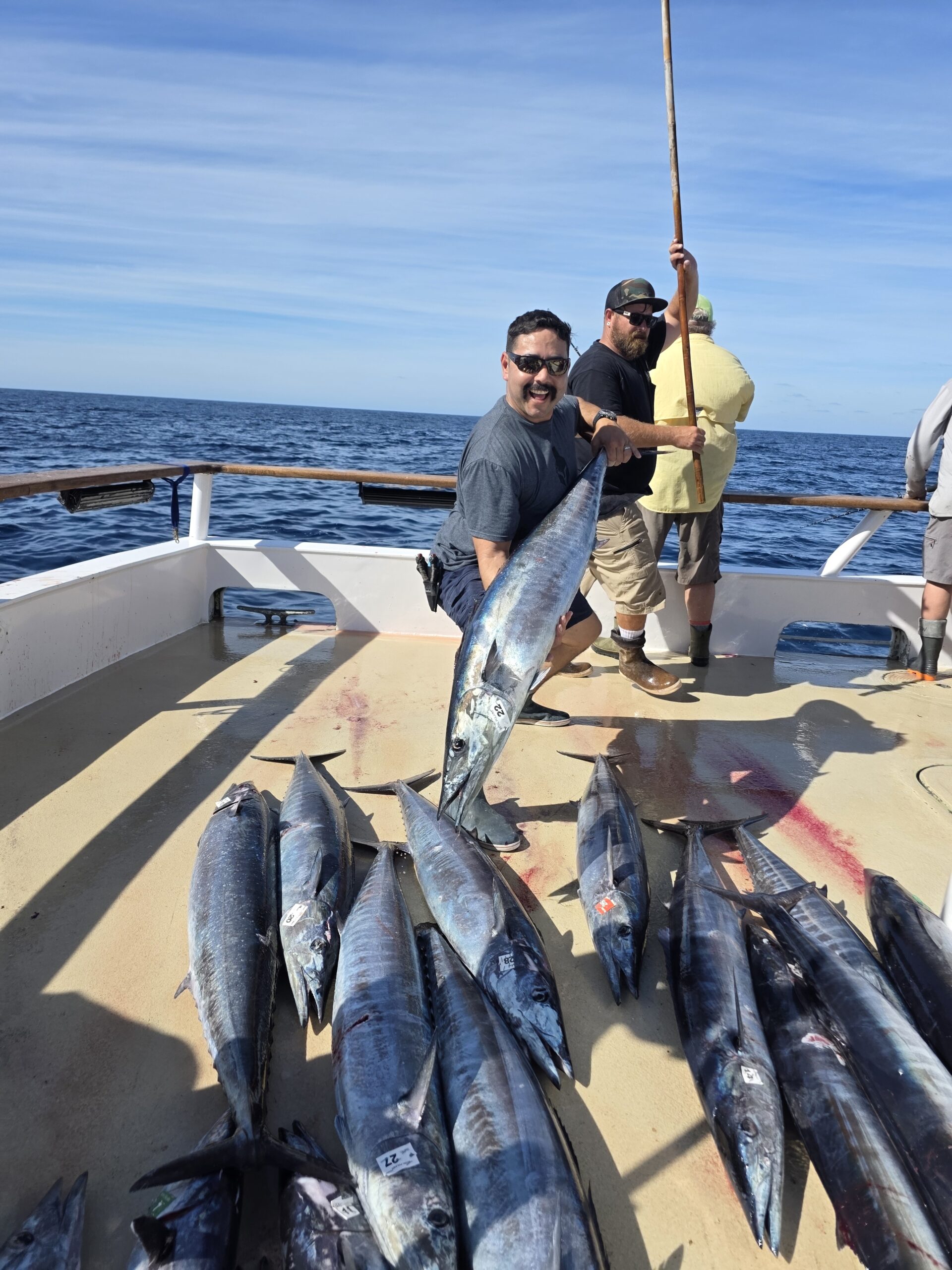 The next morning Capt. Trevon gave the Tackle seminar and everyone rigged their gear along with the crew’s assistance. We got lucky that afternoon and found fish that wanted to play and proceeded to boat Yellowfin, bluefin, yellowtail, and dorado. CM Wayne held a white elephant game that everyone enjoyed. We continued south and found wahoo, Yellowfin, and dorado the next day. Capt. Trev and crew kept searching the next day and found the magic kelp paddy that was holding wahoo, dorado, and Yellowfin. Anglers worked together to get everyone at least one wahoo.