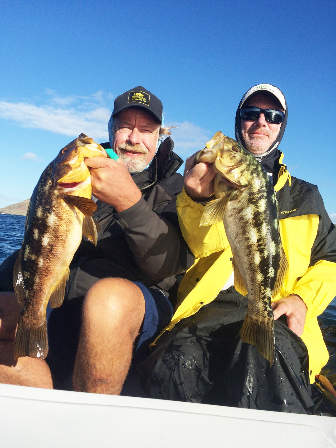 The crew of the Shogun really shined during this trip. There is a lot of extra work for the boys, from of loading and unloading skiffs, to refueling the Yamaha outboards during runs, to being both the captain, deckhand, and tour guide all at the same time. All while making sure there other duties are dealt with on the mothership. Another really cool part of this trip is the crazy light load of people. To begin there are only 24 passengers on the trip. And 3 passengers + guide on the skiffs! that leaves only 15 people at the rail when fishing from the big boat! Here again is where the mobility plays such a huge roll. The skiffs are unloaded and drooped off in the most productive inshore areas. (Inner kelp beds, boiler rocks, etc) then, The big boat takes off with the remaining 15 and fishes for yellows, bass, Rockcod, or whatever else is available at the location.